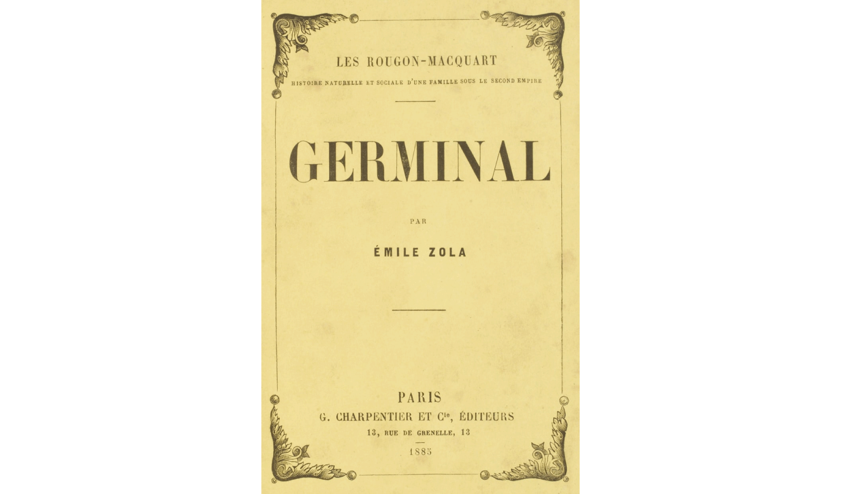 Le të përfshijmë një citat nga Germinal: “Në fund të shekullit, në një mbrëmje të përgjakur, ishte pamja e kuqe e një rebelimi që me siguri do t’i përfshinte të gjithë. Po, një mbrëmje, njerëzit, pasi u çliruan nga kufizimet e tyre dhe u tërbuan, do të galoponin nëpër rrugë. Ata do të derdhnin gjakun e borgjezisë si lumenj, do të parakalonin kokat e prera dhe do të shpërndanin ar nga gjokset e thyera kudo. Gratë do të ulërinin dhe burrat do të hapnin nofullat e tyre, si nofulla ujku, gati për të kafshuar.” ” E vendosur në Francën e viteve 1860, vepra përshkruan punëtorë që bëjnë grevë, duke kërkuar jo kompromis, por përmbushjen e kërkesave të tyre.