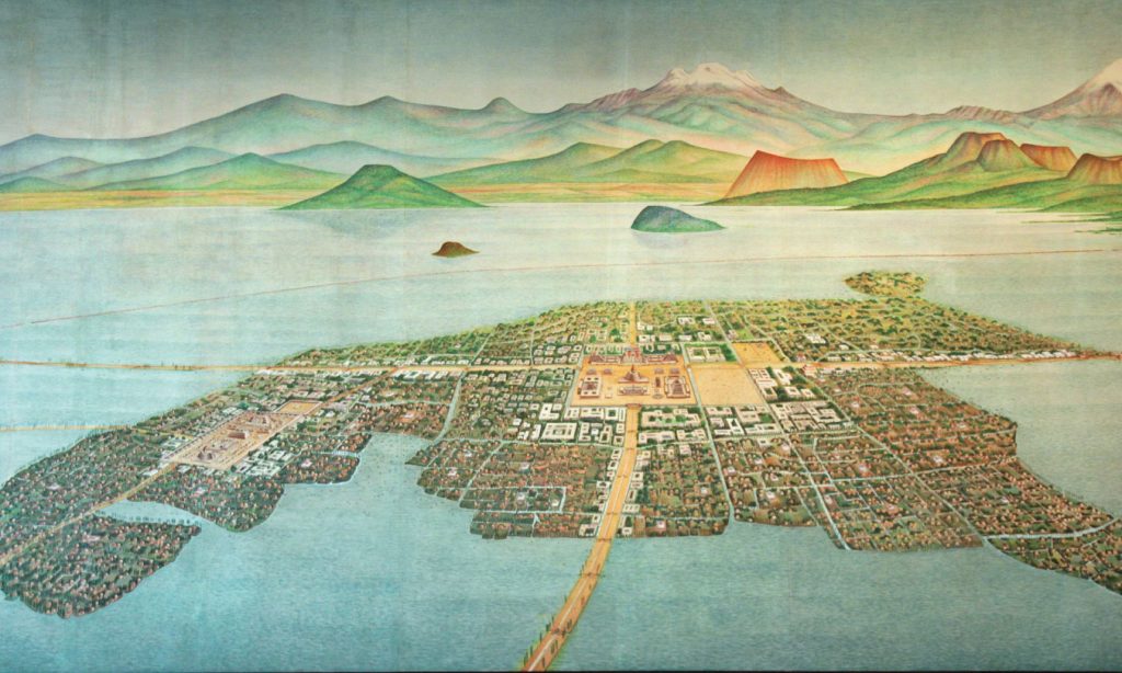 Ndoshta qyteti më i madh në Amerikën parakolumbiane, Tenochtitlan ishte kryeqyteti i Perandorisë Aztec në zgjerim nga shekulli i 14-të në shekullin e 15-të. Ajo u ndërtua në një ishull në mes të liqenit Texcoco dhe ishte vendi i pallateve mbretërore, tempujve, tregjeve dhe ndërtesave të tjera publike që i shërbyen mirë popullit Aztec dhe kontribuan në prosperitetin e qytetit dhe perandorisë.